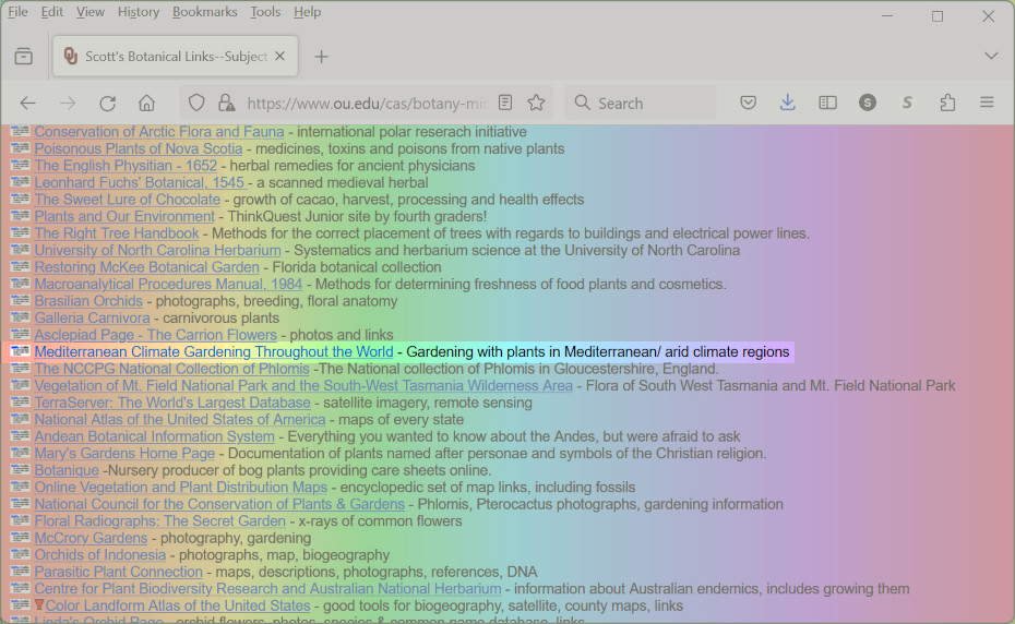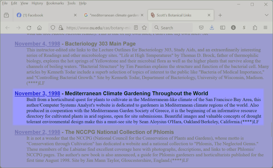 This original incarnation of the gimcw.org website I created in response to the HUGE amount of information coming through the Medit-Plants email forum I started in 1994. Coincidentally, the Mediterranean Garden Society (MGS) also started at the same time and I was actually communicating with its founder, Derek Toms.