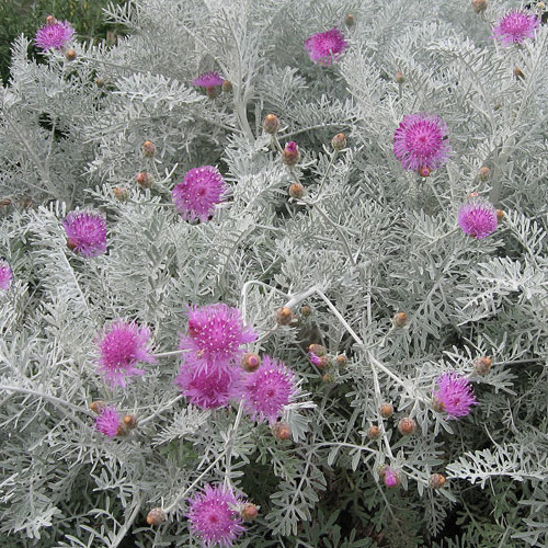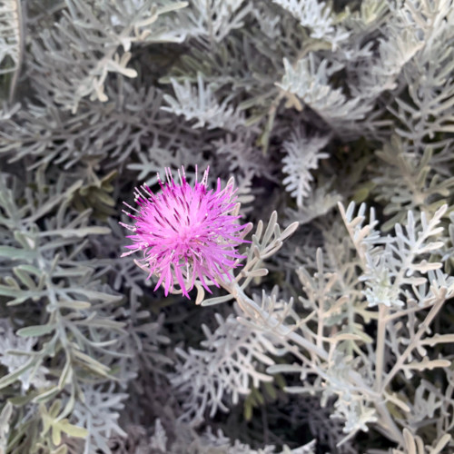 Centaurea argentea – native to Crete (flowers vary from yellow to cream to white); historically has been assumed to be C. ragusina, rare in gardens
