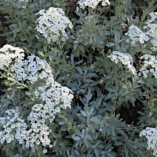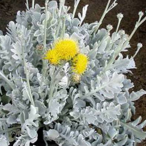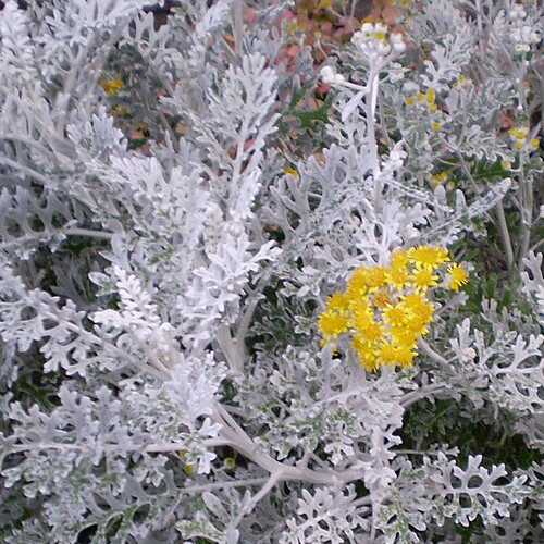 Jacobaea maritima (formerly Senecio) – Mediterranean native, replaced Centaurea ragusina in the dusty miller of the nursery trade in California in the 1970s and still the most common; many leaf forms, still quite popular; quick but somewhat weedy, untidy