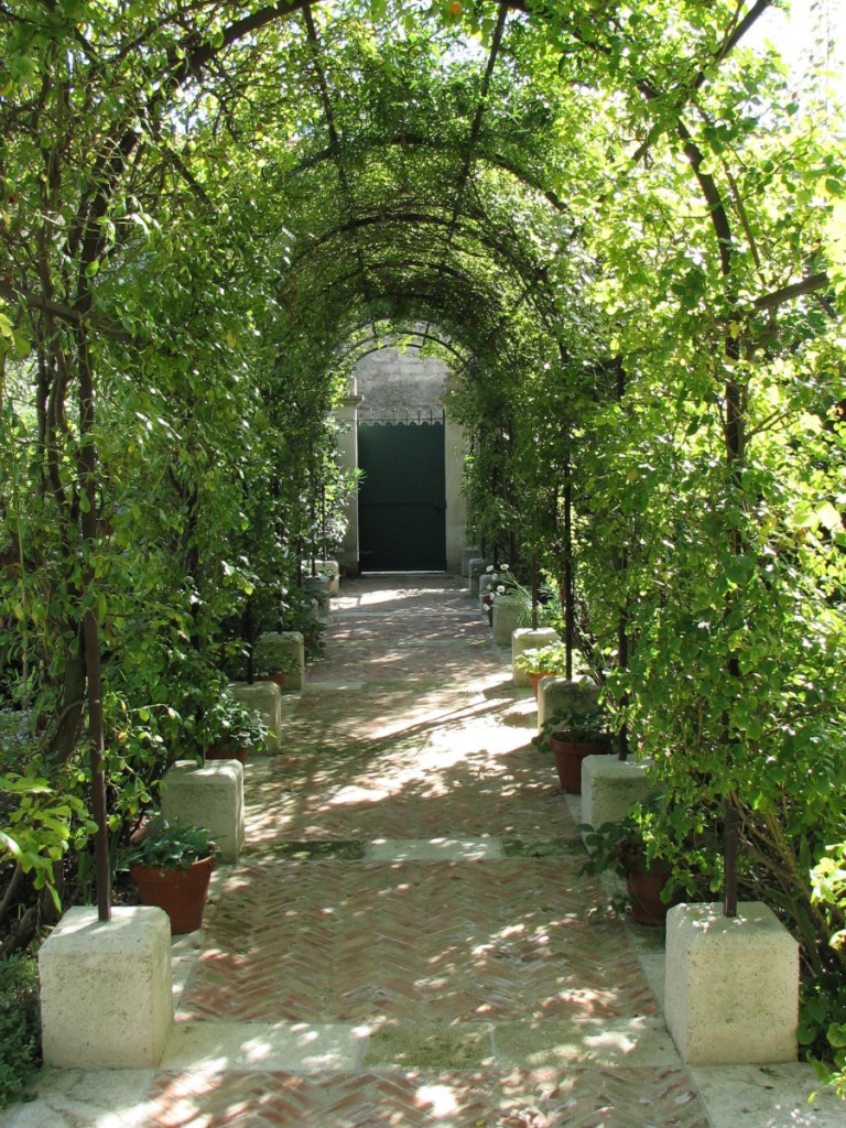 The garden property is named Mas Hugo for Vincent Van Gogh’s long suffering brother who supported him during his life. An adjacent house is named Mas Vincent. This is in reference to the famous and beautiful Saint-Paul-de-Mausole, ½ mile (800m) from the garden, which is a former Romanesque monastery turned insane asylum where Van Gogh voluntarily committed himself from 1889-1890. Today, Saint-Paul is still a psychiatric health institution but contains a small museum of the famous painter, including a recreation of his cell.