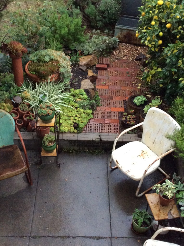 But the rear garden of this property we were inspecting was sheltered by buildings on two side and trees on the third. This created a nice heat-trap that we noticed right away. The fact that much of the space had been concreted over, historically, in a piecemeal fashion helped this effect. There was an area of open soil in which we were told we could garden, but there was also areas of concrete where we could stage potted plants. Realizing the potential of an additional ‘outdoor room’, we were excited.
