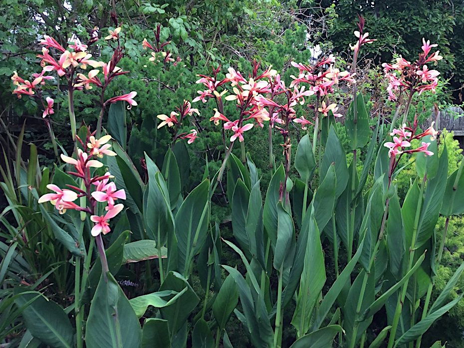 We brought a potted Canna lily that was given to me some years before. After a living confined existence, it was quite happy to have room to thrive in the rich, heavy soil of this garden!