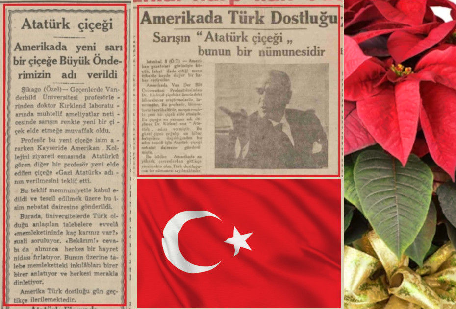 In 1935, an American professor created a new form of poinsettia and named it for Kemal Atatürk (1881-1938), was the founder and first president (1923–38) of the Republic of Turkey.