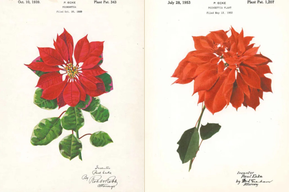 When Paul Ecke I took over the business from his father Albert, he promoted the poinsettia in earnest and even helped found the American Florists’ Exchange. People started calling him “Mr Poinsettia”. Growing thousands of field-grown plants produced allowed for Ecke to spot various mutations that produced poinsettias with better form. In the 1930s, when trademarking plants became possible, Ecke protected many of his varieties.