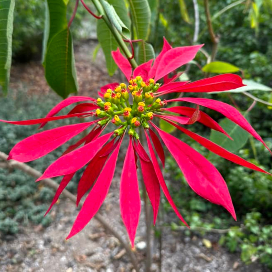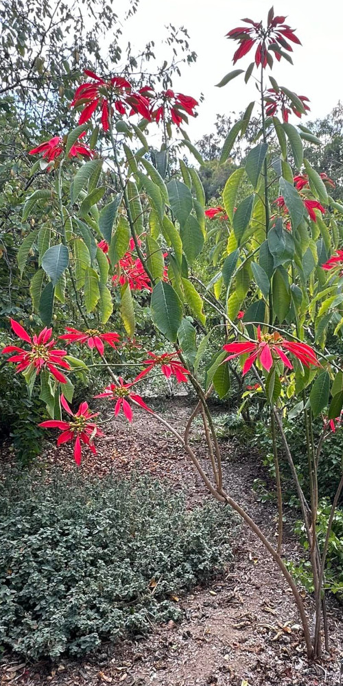 Why even bother to grow Euphorbia pulcherrima in the garden? There are so many diverse reasons gardeners choose to grow plants – food, culture, memories, aesthetics, challenges. Who can say? In spite of the ubiquity of flowering poinsettias during the holidays, perhaps you’d like your own.