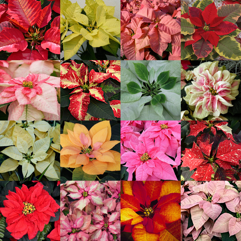Each year, some new colors and unusual forms make their debut. It can be somewhat confusing and overwhelming, and finding a particular form on demand can be near impossible. Cuttings of these types were provided to growers months ahead of time for them to grow their crops in time for the holidays. Once the plants are sold, these growers have typically moved on to producing another seasonal plant (i.e. they are not like your typical garden plant nurseries).