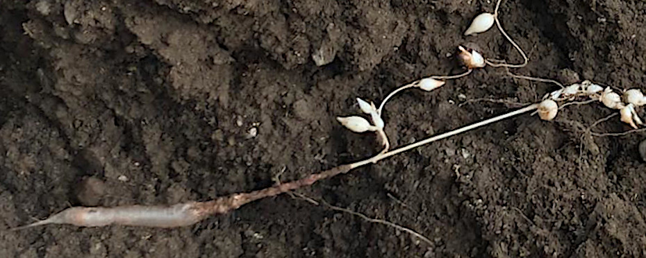 Summer #2 : More new bulbils are now lying dormant on top of and in the dry summer soil. Argh!!
