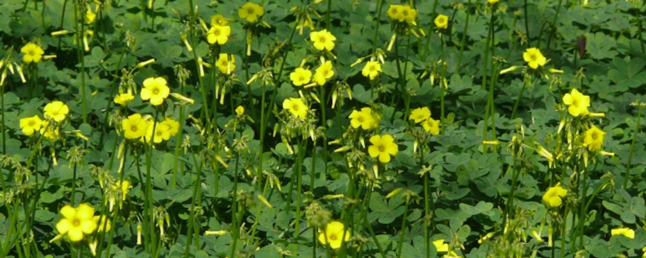 Bermuda buttercup, Bermuda clover, buttercup oxalis, Cape sorrel, goat’s foot, soursop, sourgrass, yellow oxalis,