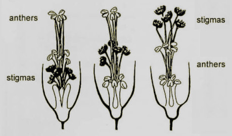 Like some other Oxalis species, O. pes-caprae has curious ‘tristylic’ flowers of different types, presumably as a means of promoting cross-pollination. Individuals of each type exist in a natural population (clonal populations tend to be of the same type).
