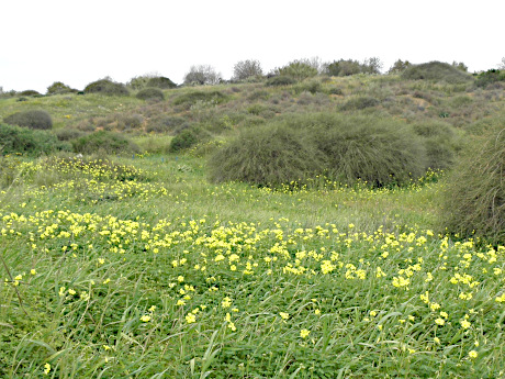 Spring : All of the sudden, the season has apparently progressed rapidly and the gardener is now reminded that there are O. pes-caprae lurking here and there by their bright yellow flowers!! The improving weather also inspires a desire to work in the garden, so, finally pulling the Oxalis is on the agenda.