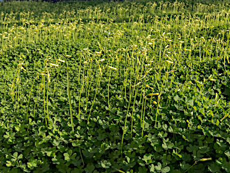 While hand pulling is possible with spot infestations in a garden, large scale field infestations would be best addressed by repeated mowing or even cultivating during this same time period. Spraying is often recommended, but results are limited and it poisons the environment. I’ve even tried using a flame weeder, but O. pes-caprae is so very succulent that its like steaming vegetables (takes a while) and seldom kills the plant. Solarization (covering the soil with sheets of plastic) seems to also have limited success in that the dormant bulbils can been too deep to be effected.