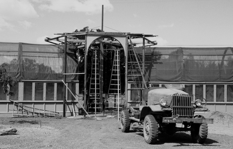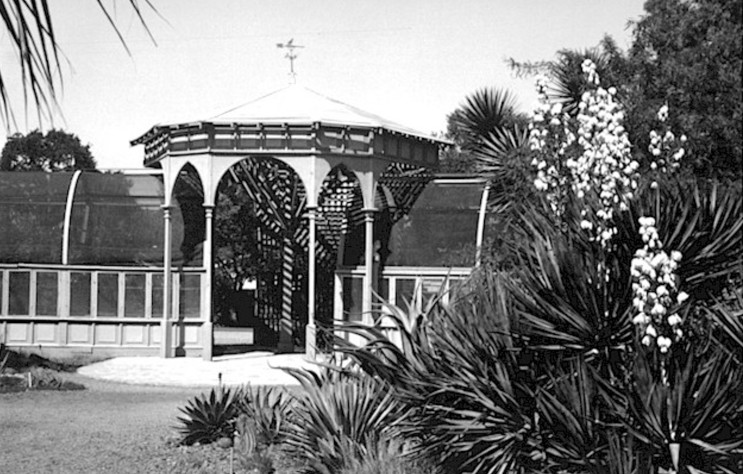 Philip built two shade houses, according to Ruth’s wishes, adjacent to the house driveway. Ken Householder, an architect friend who they knew from attending the SF Opera, designed a pergola/gazebo to connect them, which Philip built according to his specifications. The structure, which came to be know as ‘Ruth’s Folly’, dominated the early garden.